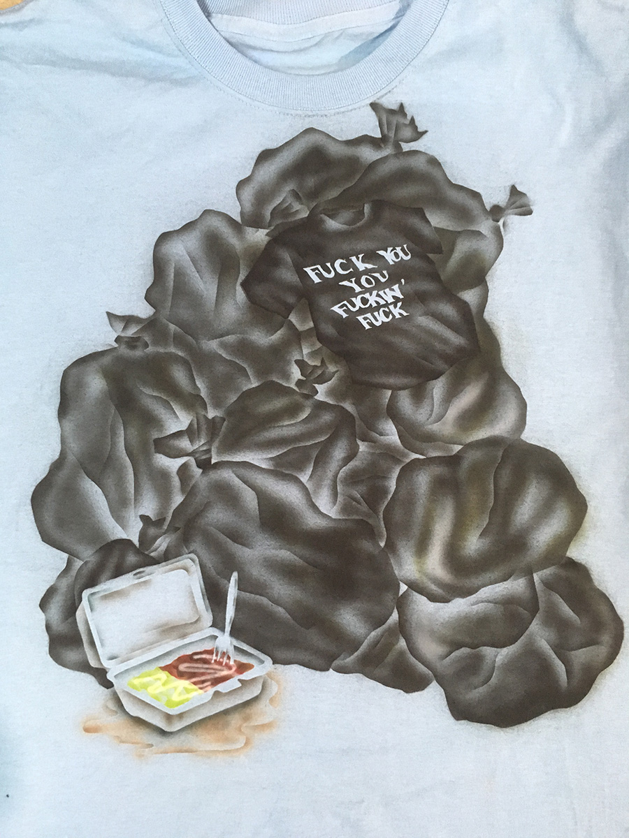 airbrush t-shirt commission via Rio Roye, 2017
