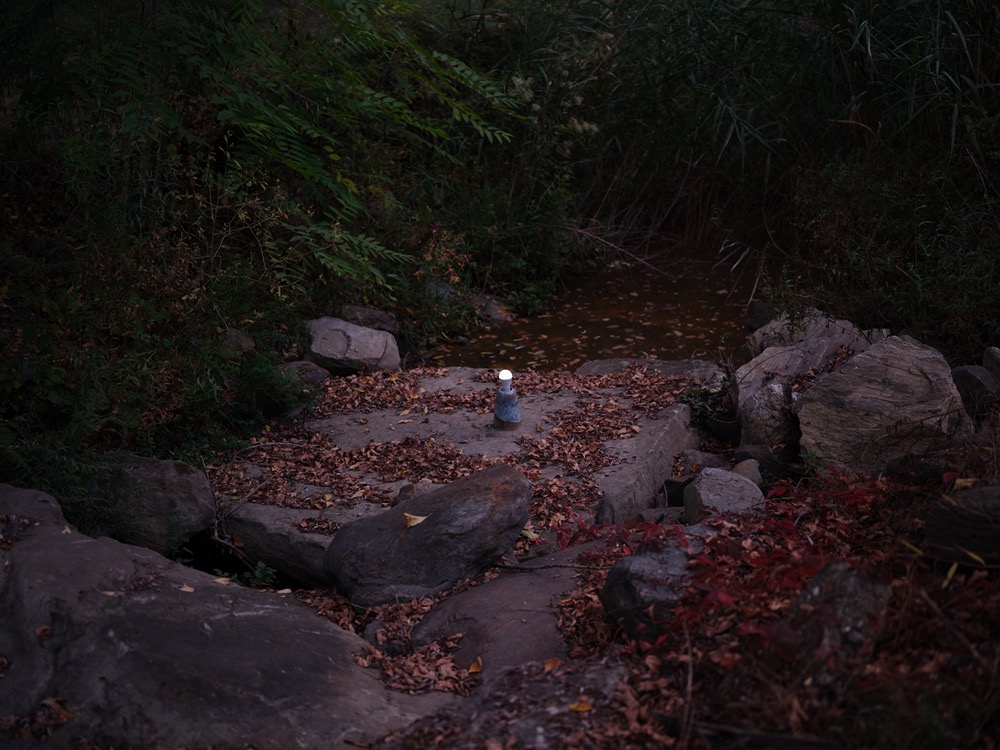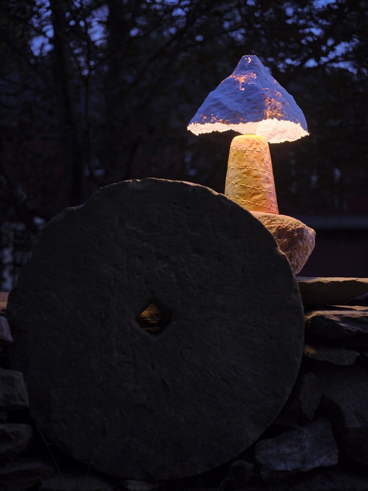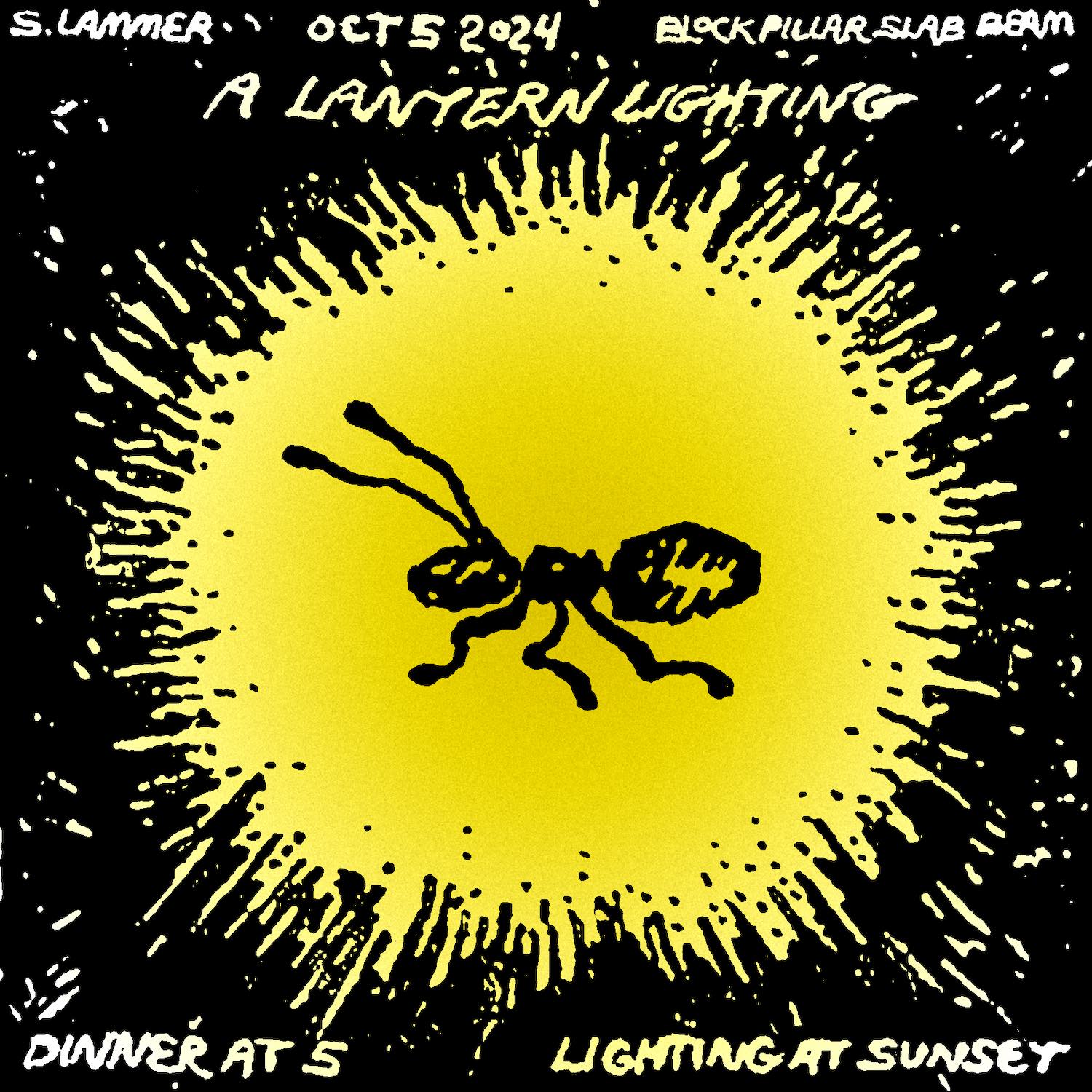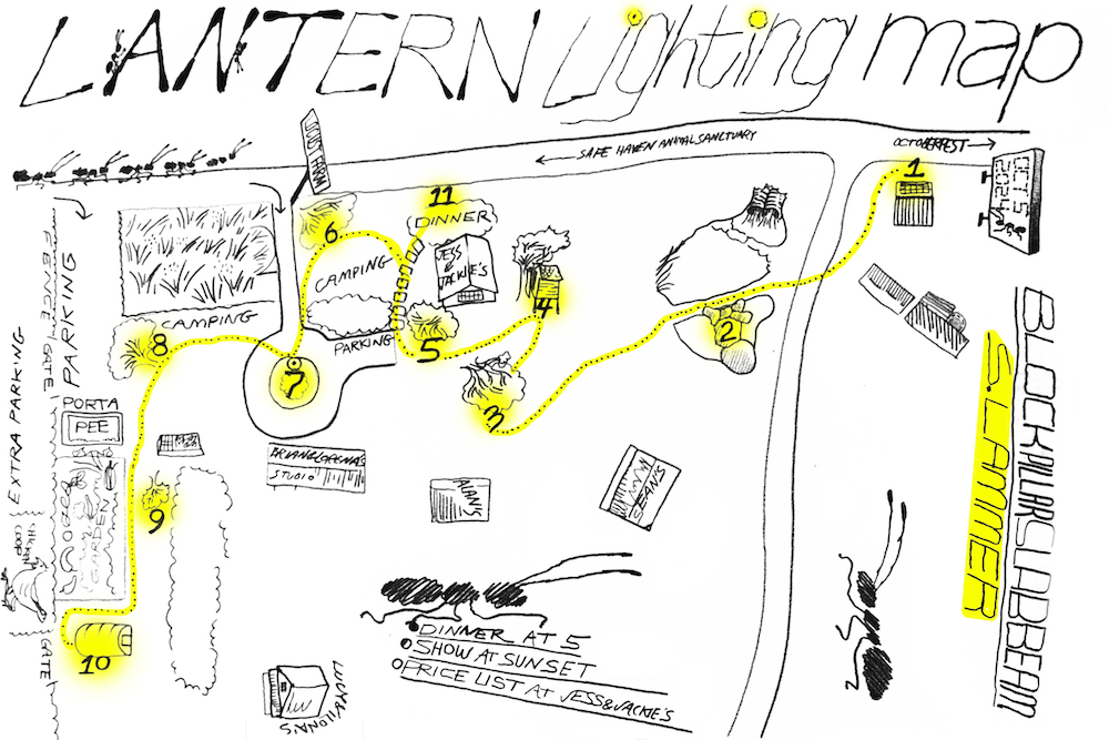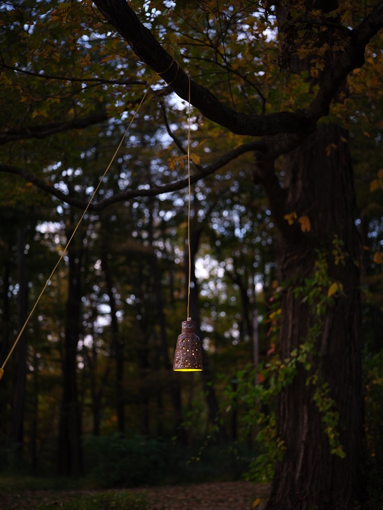a lantern lighting took place in Poughquag, NY at Block Pillar Slab Beam art residency on October 5 2024. After an outdoor dinner, poem excerpts were read by Ada Smailbegovic under the beech tree. Guests set out with their maps to find 11 slipcast ceramic and handmade paper ant lanterns illuminated as night fell over the landscape.